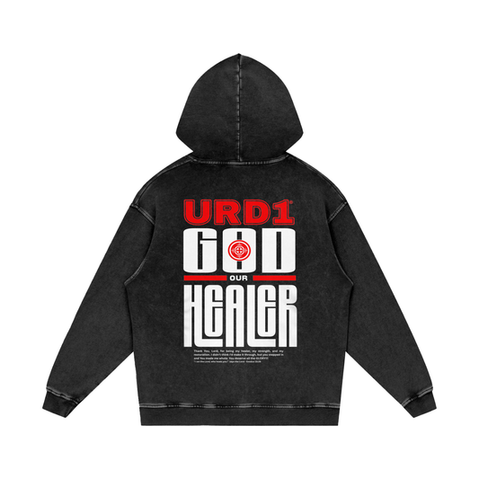 URD1 - "GOD OUR HEALER" - Acid Wash Oversize Hoodie